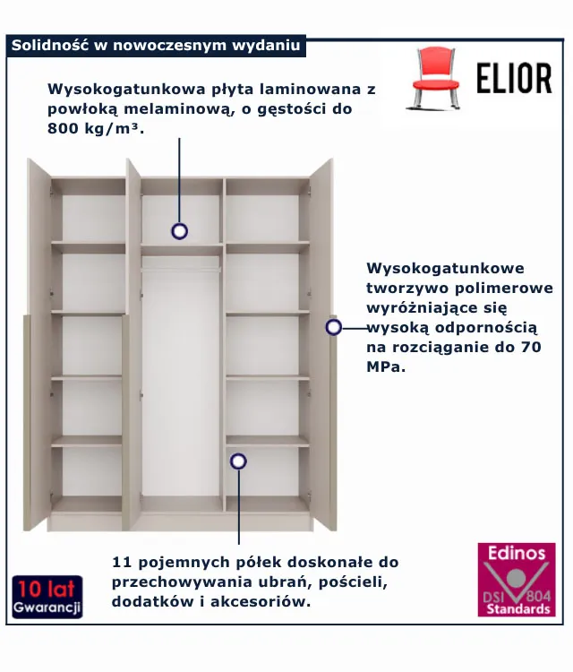 Dotyczy: 4-drzwiowa kaszmirowa szafa ze złotymi uchwytami - Okerix
