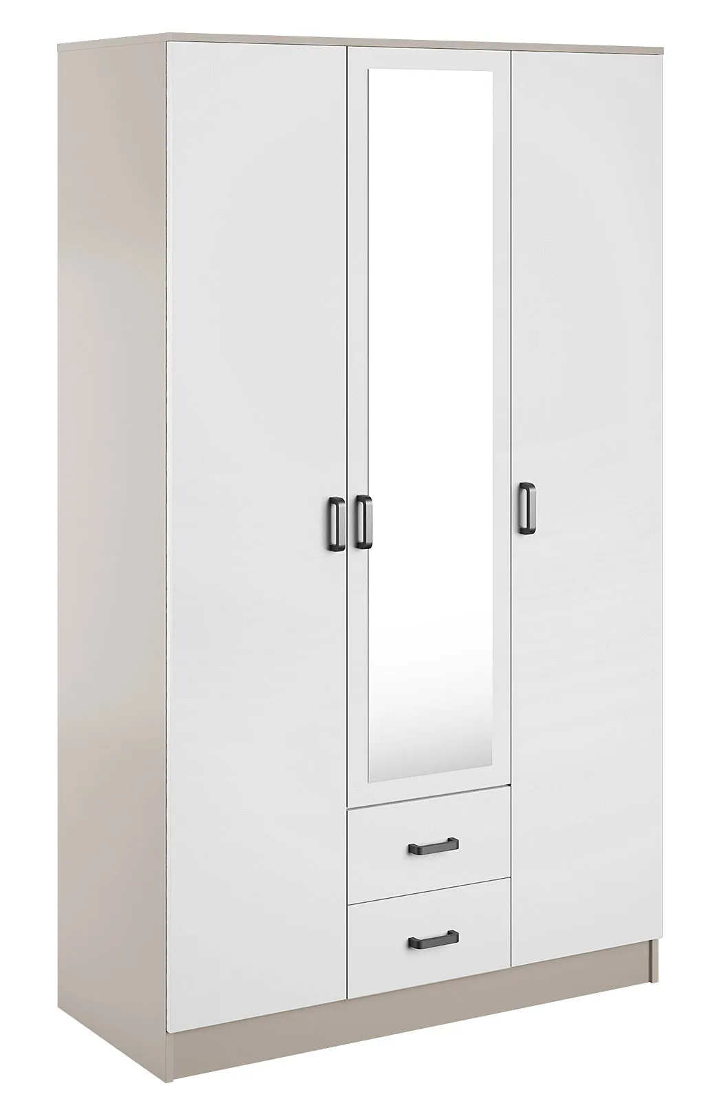 Trzydrzwiowa szafa z lustrem i szufladami kaszmir + biały - Montixa