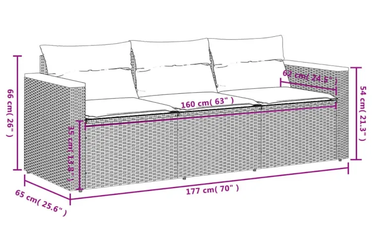 • Wymiary fotela: szerokość: 177 cm, głębokość: 65 cm, wysokość: 66 cm.