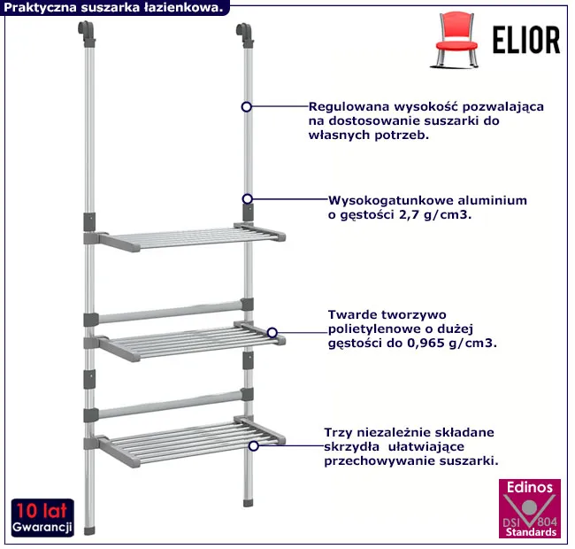 • regulowana wysokość, która pozwoli na dostosowanie suszarki do Twoich potrzeb