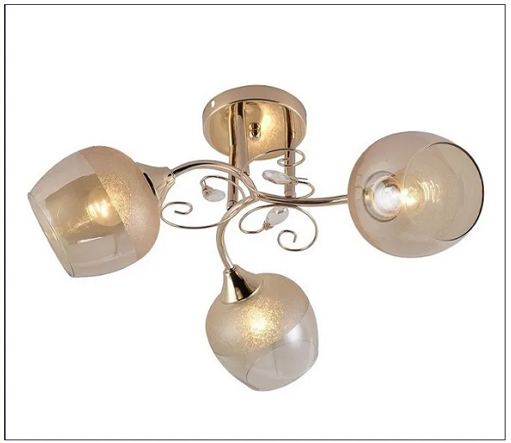 Trzyramienny żyrandol ze złotym zawijanym zawiesiem - V199-Calf