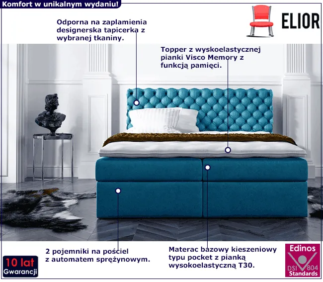 Chcesz cieszyć się dobrym zdrowiem i śnić kolorowe sny? ​W taki razie powinnaś zawsze sypiać w komfortowym łóżku i luksusowym otoczeniu. Zatanawiasz się jak to zrobić? To proste! Kontynentalne łóżko 140x200 Santino marki Elior zapewni nie tylko wygodę, ale również idealną oprawę snu. Santino - luksus zdrowego snu w zjawiskowym wydaniu!