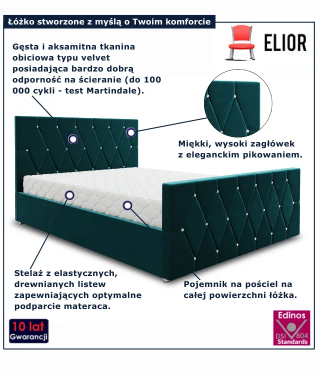 Dotyczy: Czarne łóżko pikowane z pojemnikiem 5 rozmiarów - Diamare
