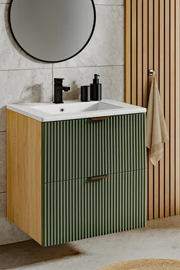 Dotyczy: Biała ryflowana szafka wisząca z umywalką wpuszczaną - Enda 8X