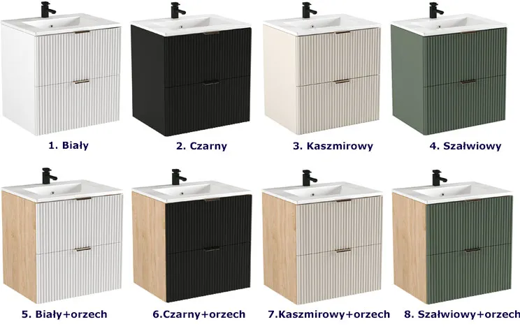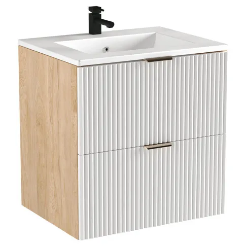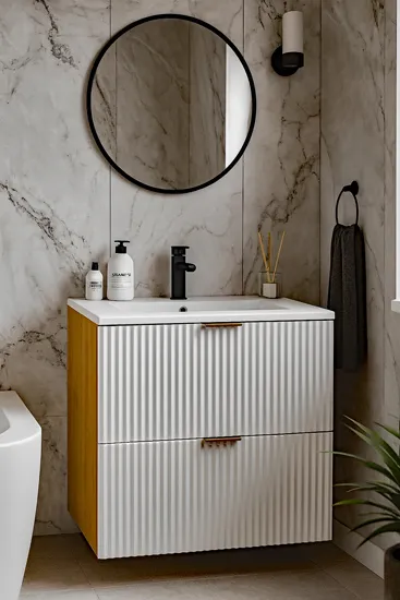 Dotyczy: Biała ryflowana szafka wisząca z umywalką wpuszczaną - Enda 8X