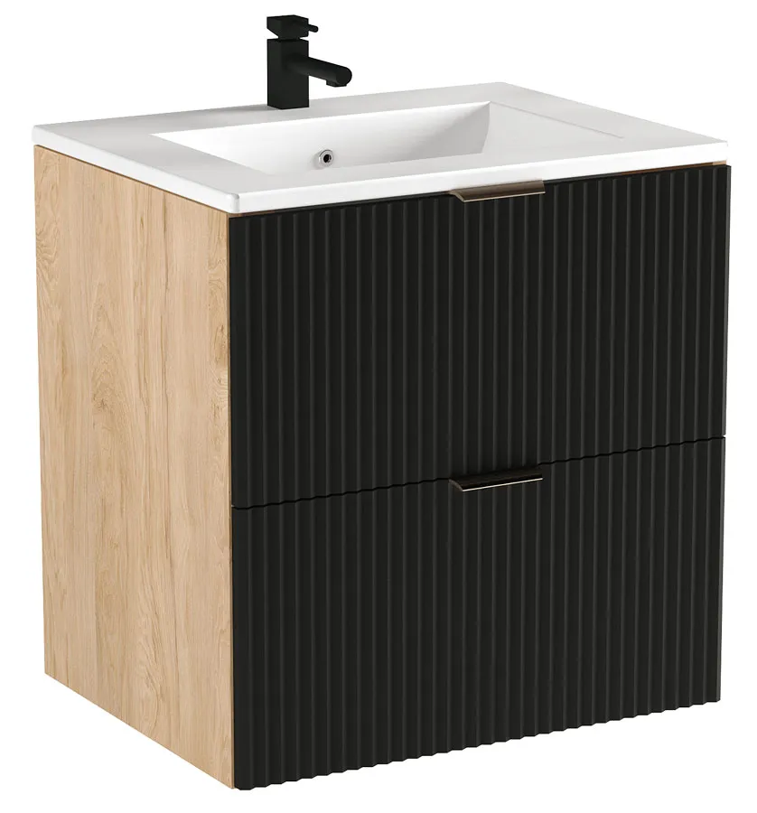 Umywalka z ryflowaną szafką ścienną czarny + orzech - Enda 8X