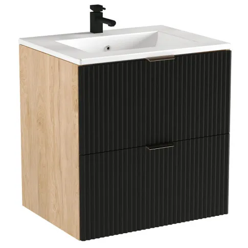 Ryflowana szafka z umywalka wpuszczaną Enda 8X czarny + orzech