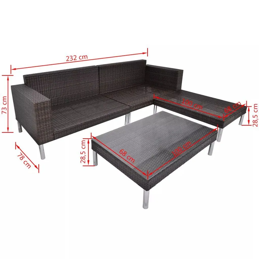 vidaXL 4-cz. zestaw wypoczynkowy do ogrodu, poduszki, rattan PE, brąz