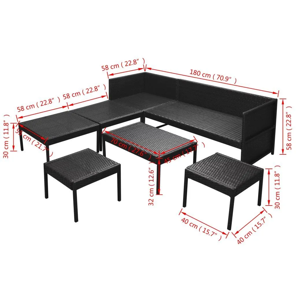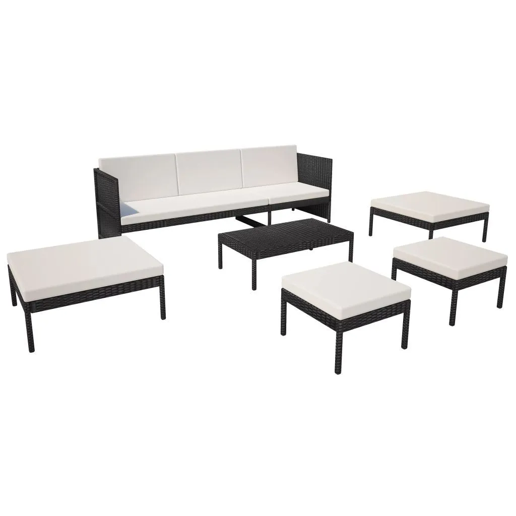 vidaXL 6-cz. zestaw wypoczynkowy do ogrodu, poduszki, rattan PE czarny