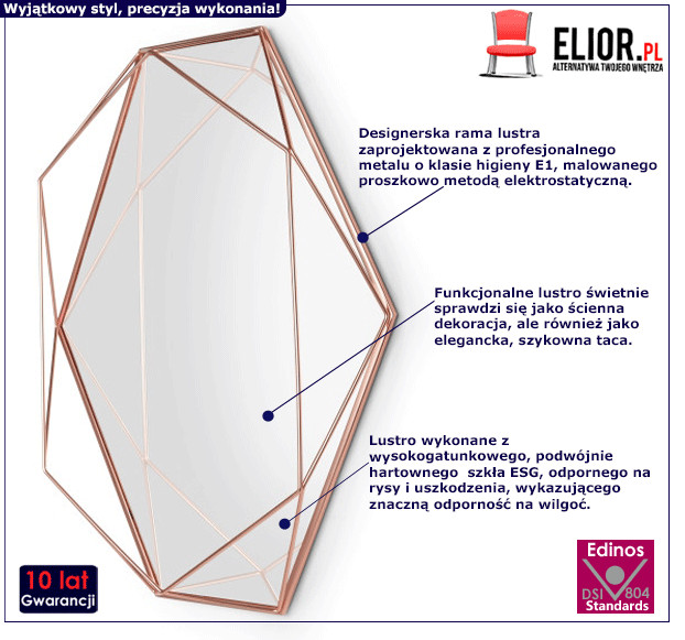 - Modna kolorystyka: miedziane, srebrne. Kliknij w link i sprawdź także inne lustra w sklepie Edinos.pl. Stwórz swój praktyczny zestaw mebli.