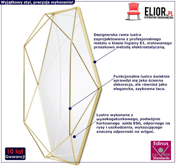 - Modna kolorystyka: złote, srebrne. Kliknij w link i sprawdź także inne lustra w sklepie Edinos.pl. Stwórz swój praktyczny zestaw mebli.