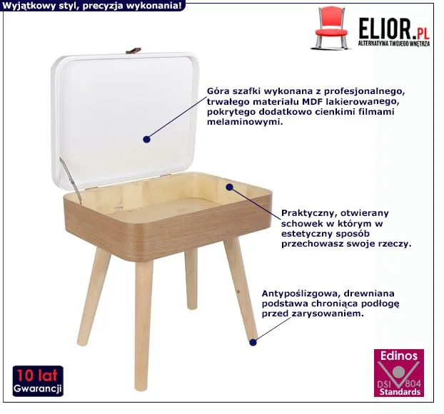 - Modna kolorystyka: modernistyczna biel oraz naturalne drewno. Kliknij w link i sprawdź także inne białe szafki nocne w sklepie Edinos.pl. Stwórz swój praktyczny zestaw mebli.