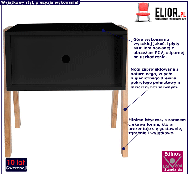 - Modna kolorystyka: naturalne drewno, czarna. Kliknij w link i sprawdź także inne czarne szafki nocne w sklepie Edinos.pl. Stwórz swój praktyczny zestaw mebli.