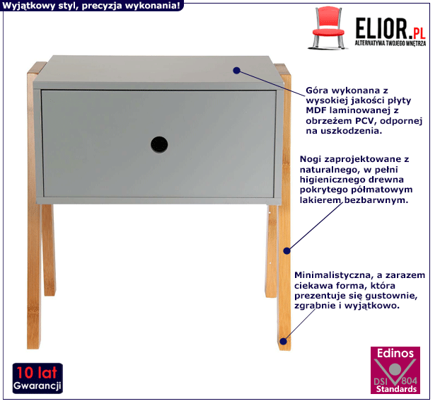 - Modna kolorystyka: naturalne drewno, szara. Kliknij w link i sprawdź także inne szare szafki nocne w sklepie Edinos.pl. Stwórz swój praktyczny zestaw mebli.