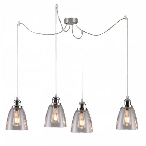 Nie zawiera głównego źródła światła Trzonek: E27 Moc max (W): 4x40 Materiał: zawiesie stalowe, klosz szklany Kolor: chromowy