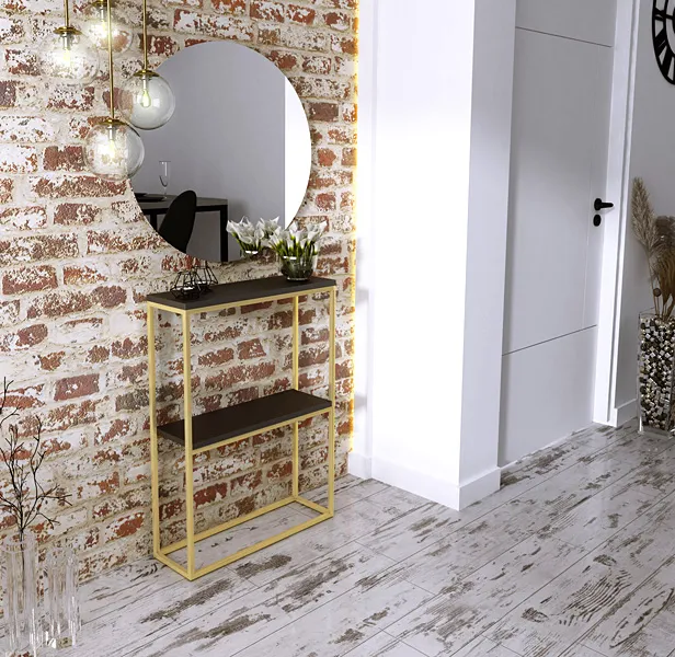 Dotyczy: Wąska konsola z metalowym stelażem złoty + dąb lancelot - Carello 3X