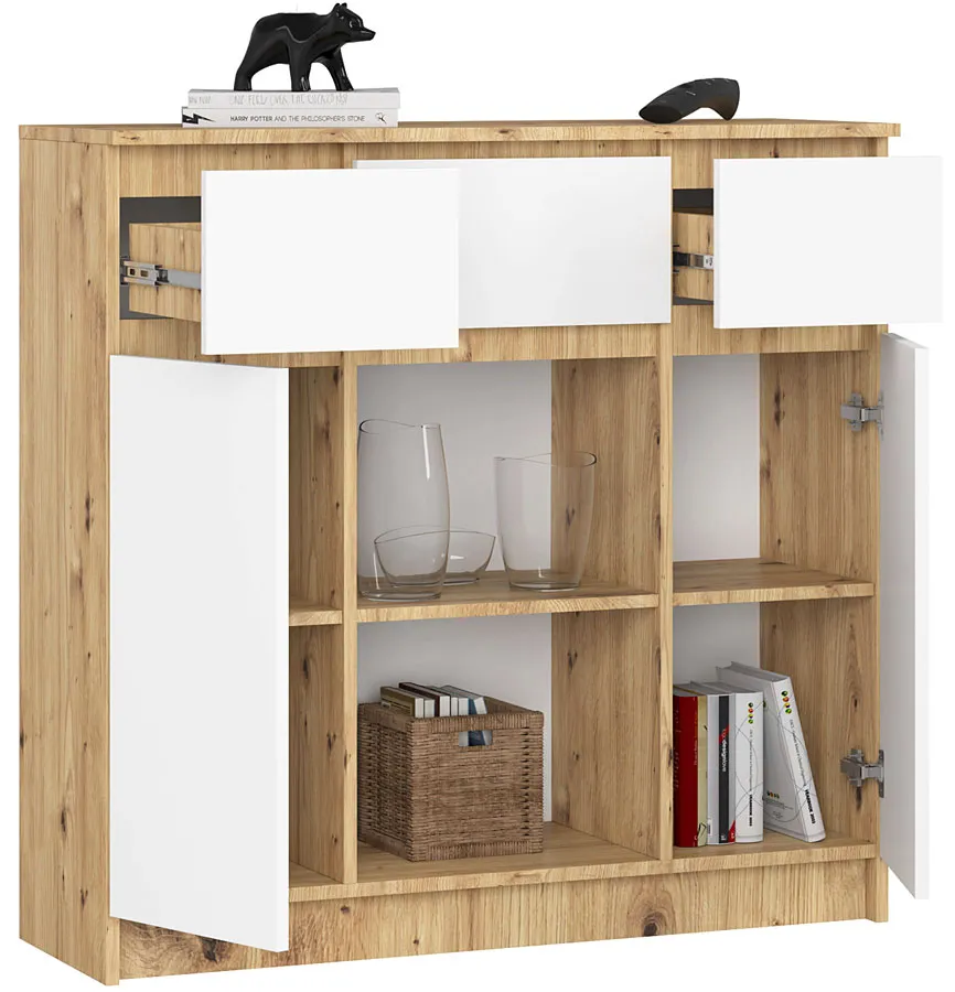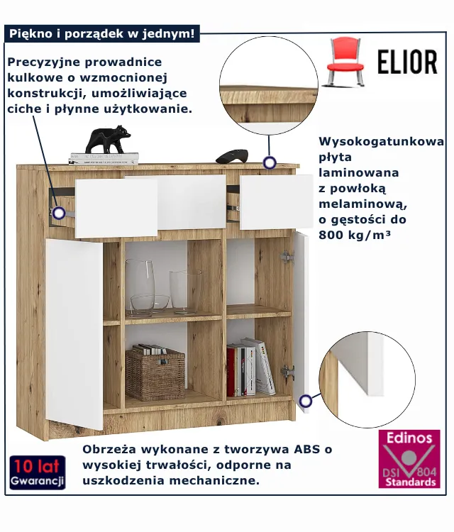 Dotyczy: Minimalistyczna komoda do salonu dąb sonoma + biały - Nuvo