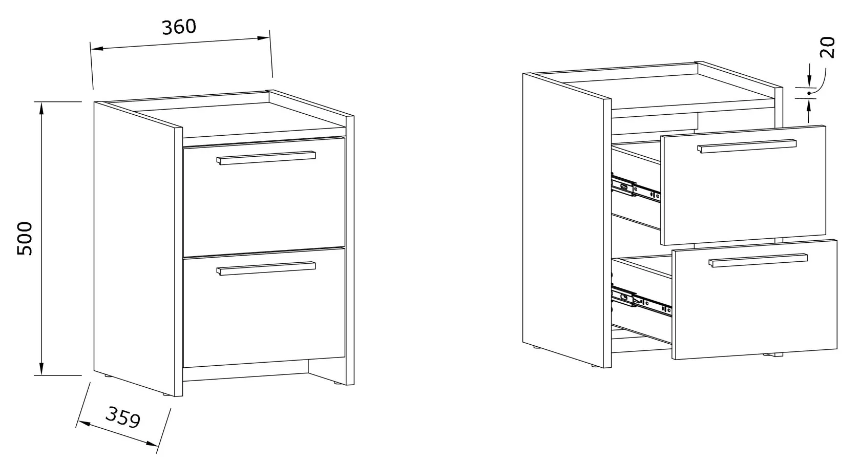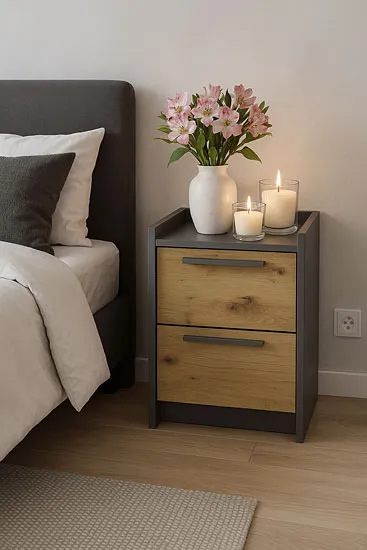 • Dwie funkcjonalne szuflady, które pomogą utrzymać porządek w sypialni.