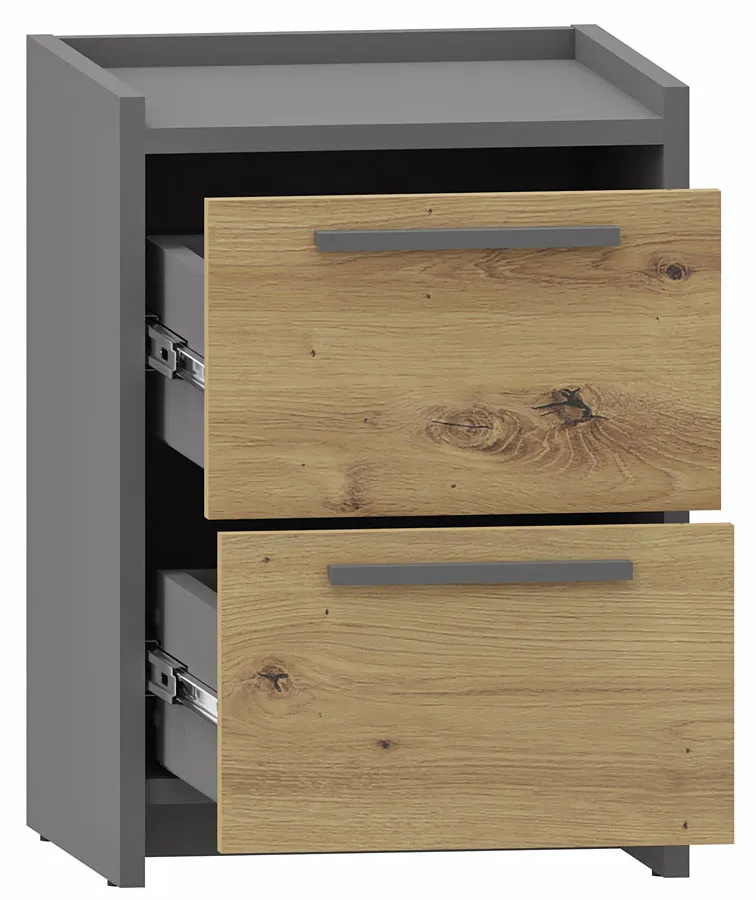 Wąska szafka nocna z szufladami dąb artisan + antracyt - Opolia 4X