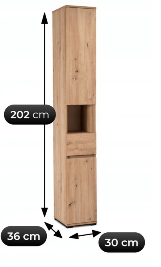 Regał spełnia swoje zadanie a szerokość 30 cm trafiona, wygląd zgodny z opisem, montaż przebiegł bez większych problemów. Jednak jedna uwaga: głębokość 36 cm mogłaby być minimalnie większa gdyż niektóre wyższe butelki czy akcesoria się nie mieszczą idealnie. Mimo to jestem zadowolony z zakupu.