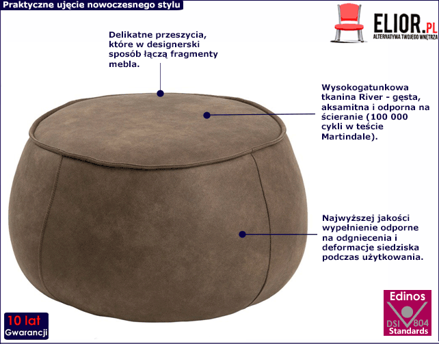 • Modna kolorystyka: brązowy. Kliknij w link i sprawdź także inne pufy w sklepie Edinos.pl. Stwórz swój praktyczny zestaw mebli.