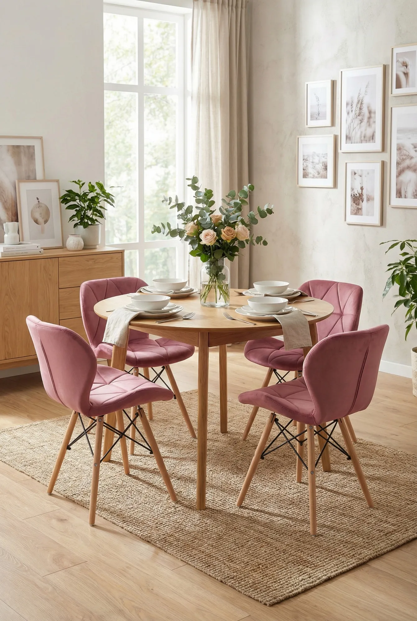Dotyczy: Różowe krzesło welurowe pikowane do stołu - Inez 4X