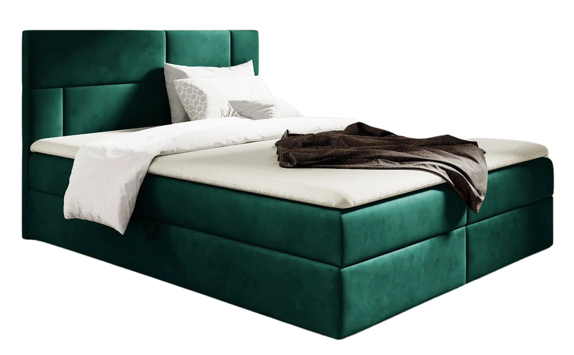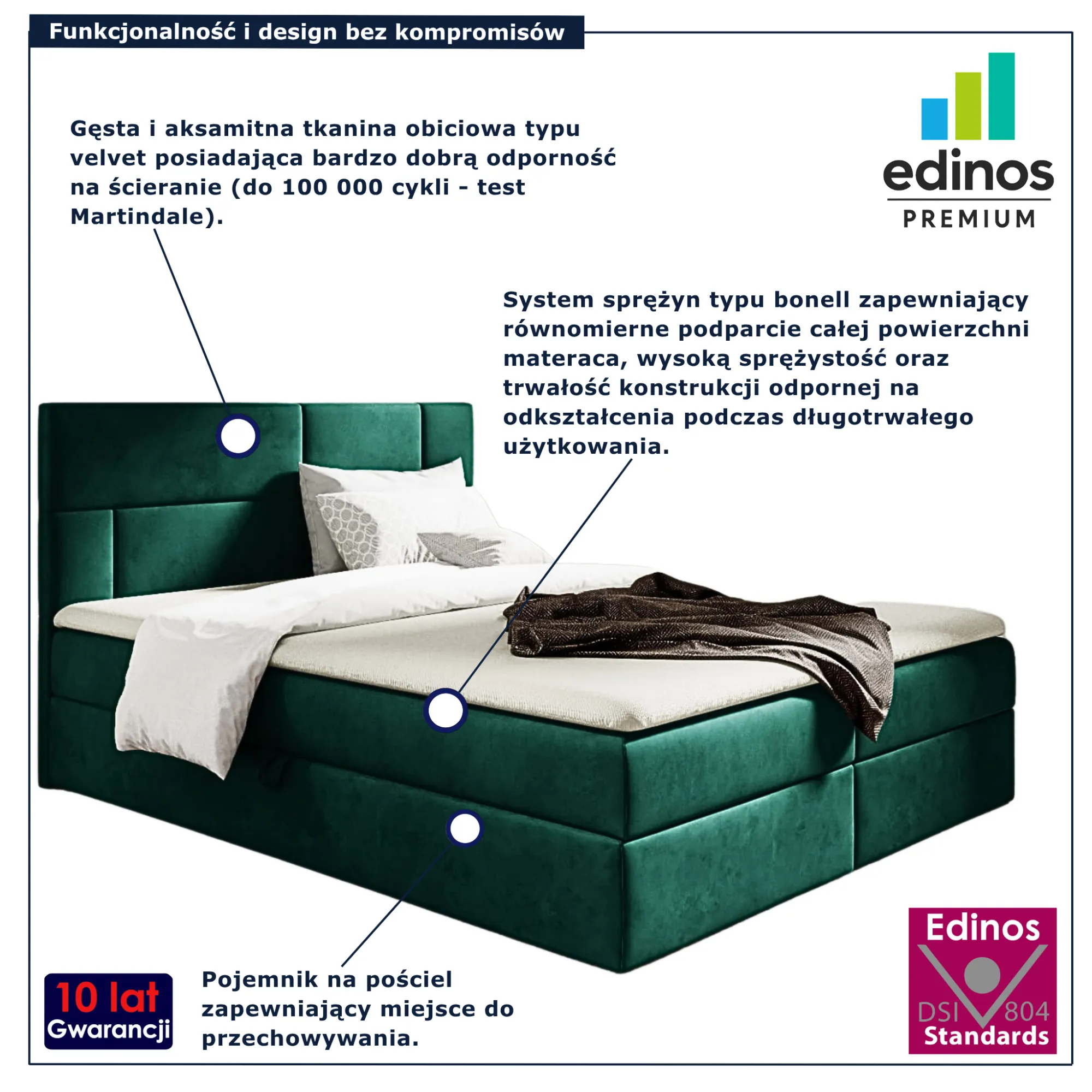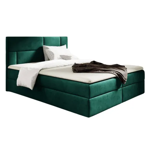 Welurowe łóżko tapicerowane w kolorze butelkowej zieleni 5 rozmiarów - Orellis
