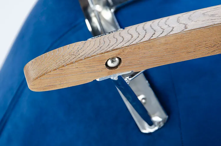 Designerska tapicerka mebla wykonana została z wysokogatunkowej tkaniny River - to gęsta i aksamitna tkanina obiciowa typu velvet. Materiał ten jest niesamowicie miękki i przyjemny w dotyku, a do tego lekko połyskuje dodając całości szlachetności i elegancji. River to jeden z francuskich welurów posiadający bardzo dobrą odporność na ścieranie (do 100 000 cykli - test Martindale). Stelaż fotela stworzony jest z najwyższej jakości stali chromowanej o zawartości aż stali nierdzewnej oraz chromu, co gwarantuje mu niezwykły efekt wizualny, posiadając przy tym ponadprzeciętne cechy antykorozyjne oraz lepszą odporność na uszkodzenia mechaniczne .