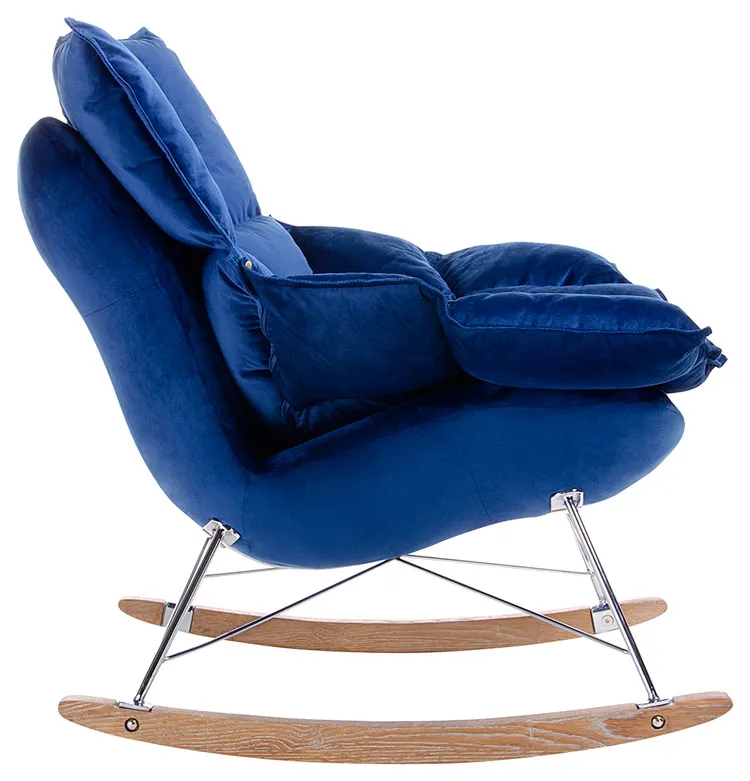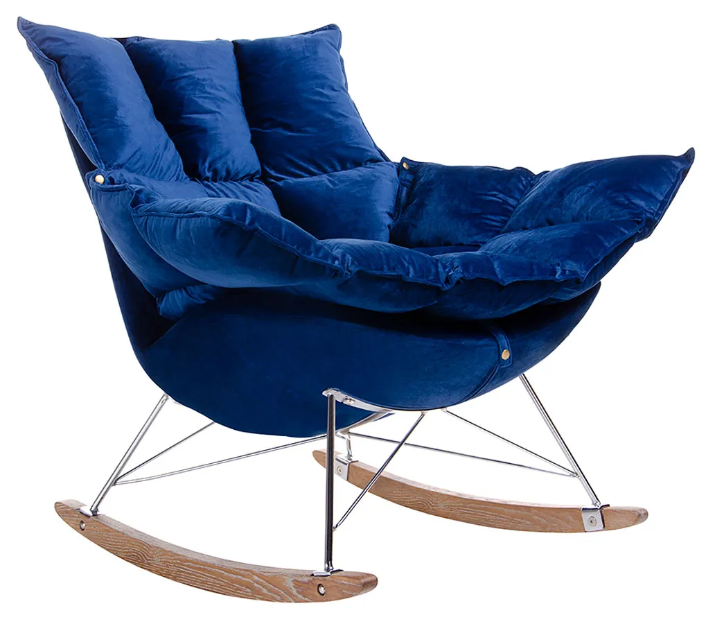 Welurowy ciemnoniebieski bujany fotel - Izeris