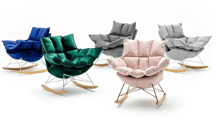 Welurowy fotel bujany na płozach