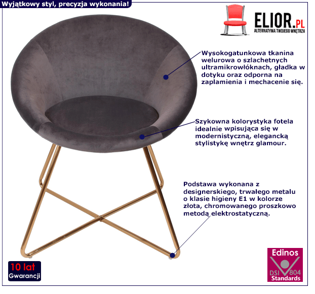 - Modna kolorystyka: niebieski, złoty. Kliknij w link i sprawdź także inne welurowe fotele w sklepie Edinos.pl. Stwórz swój praktyczny zestaw mebli.