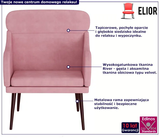 • Kolor: różowy. W naszej ofercie posiadamy także inne fotele do czytania.
