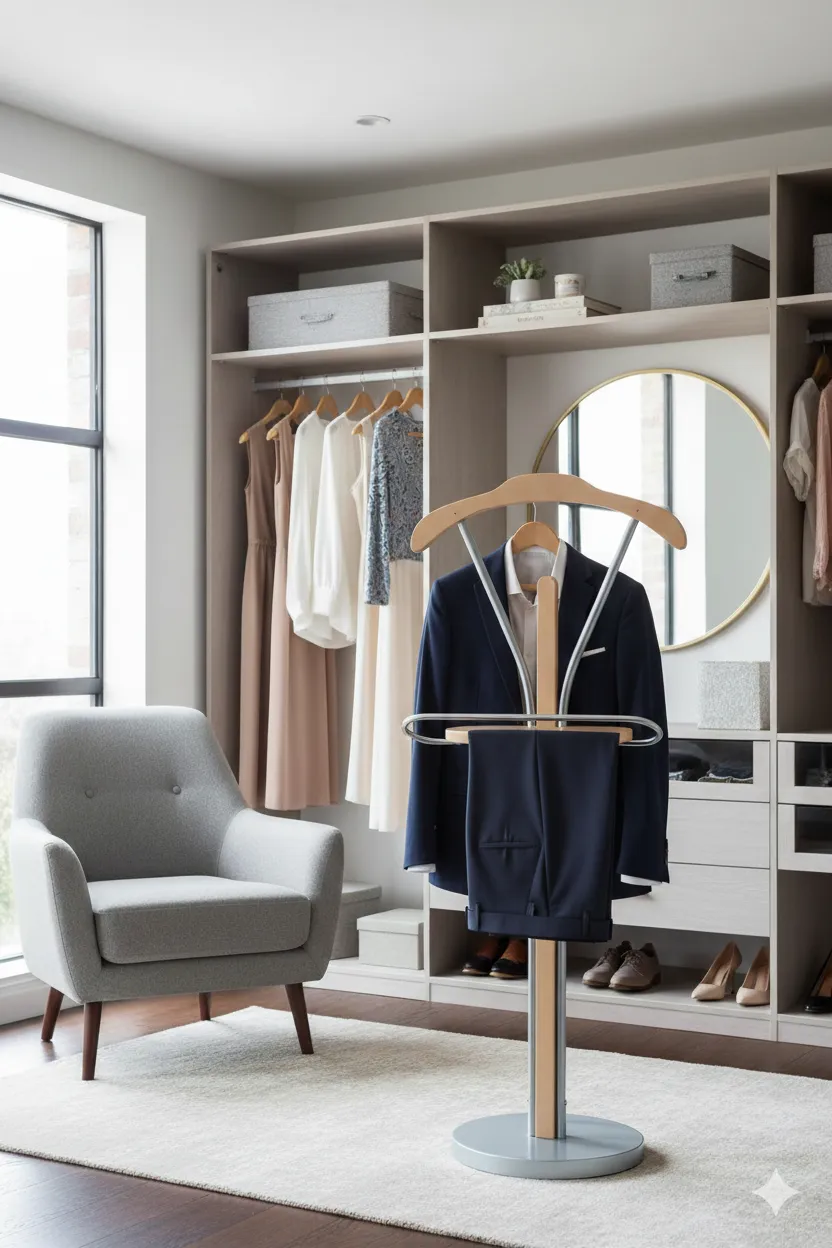 Wolnostojący stojak na garnitur Gareno w kolorze drewna