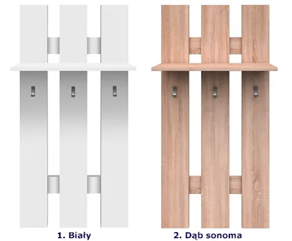 2 modne kolory: biały oraz dąb sonoma. Sprawdź naszą ofertę i wybierz ulubioną wersję kolorystyczną wieszaka Riza 20X.