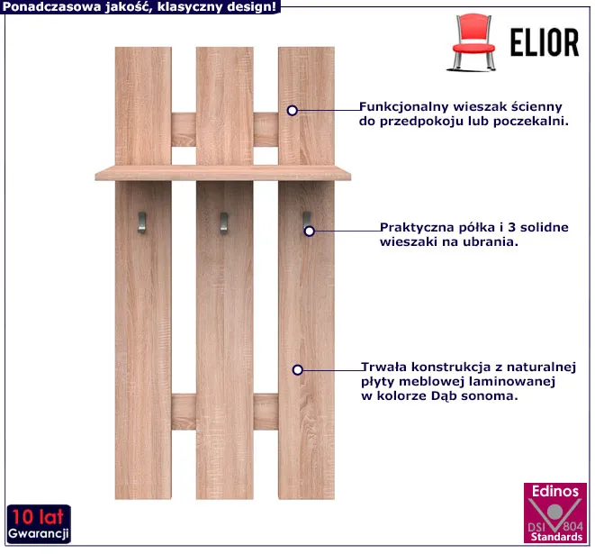 • Kolor: dąb sonoma. Kliknij w link i sprawdź także inne wieszaki na kurtki w sklepie Edinos.pl.