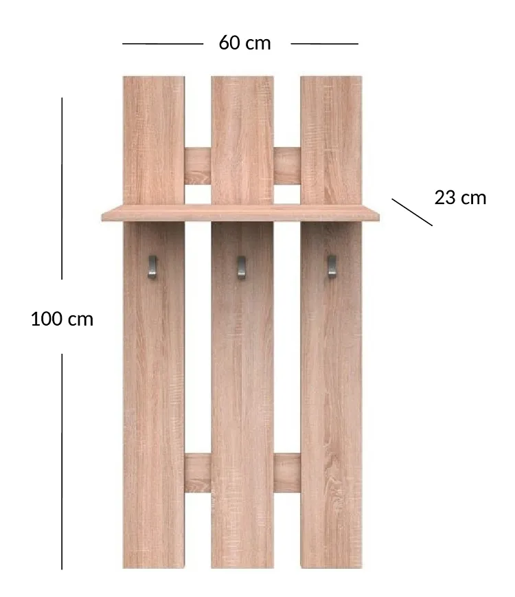 Wieszak ścienny do przedpokoju dąb sonoma - Riza 20X