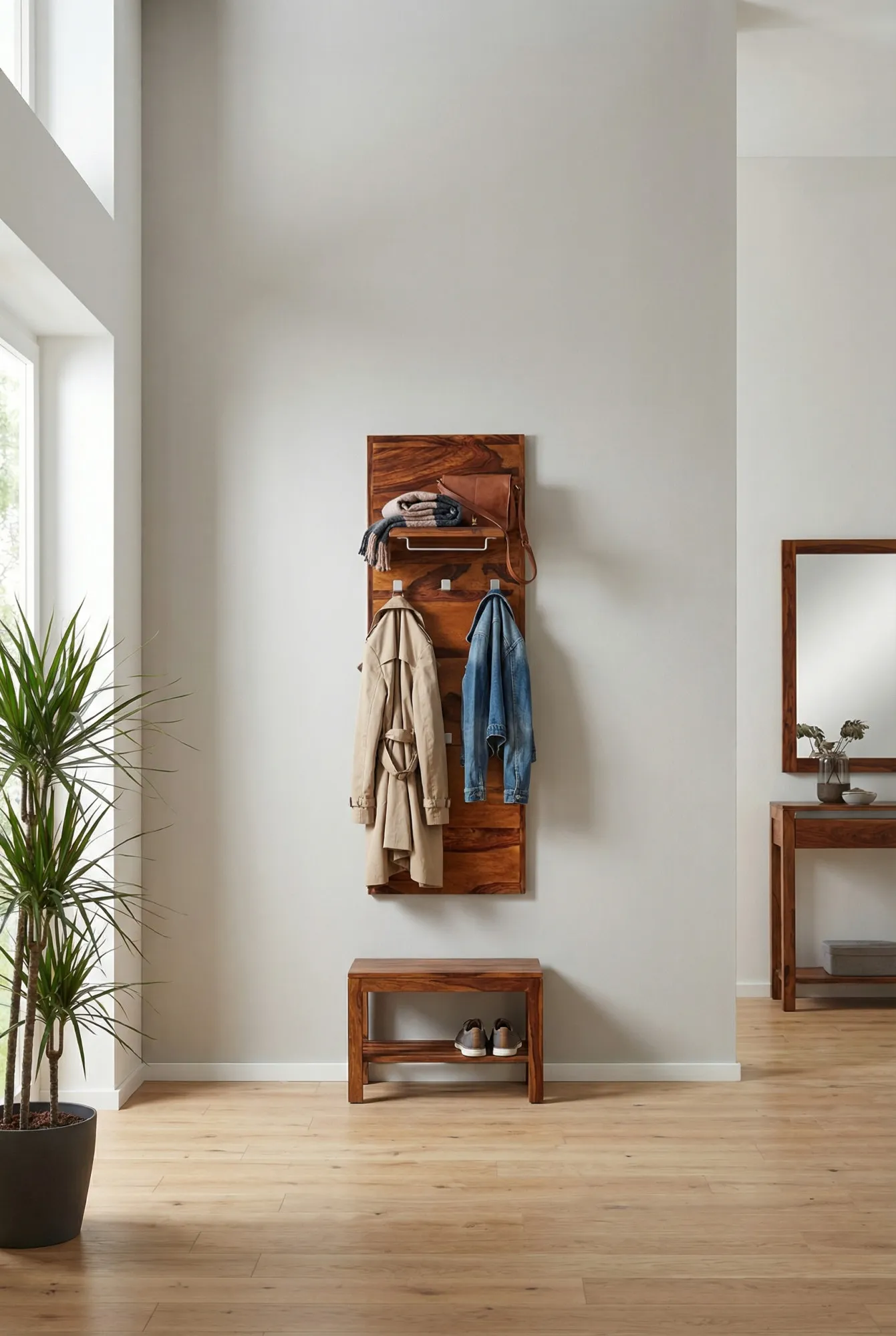 Aranżacja przedpokoju z wieszakiem ściennym z drewna sheesham Skira