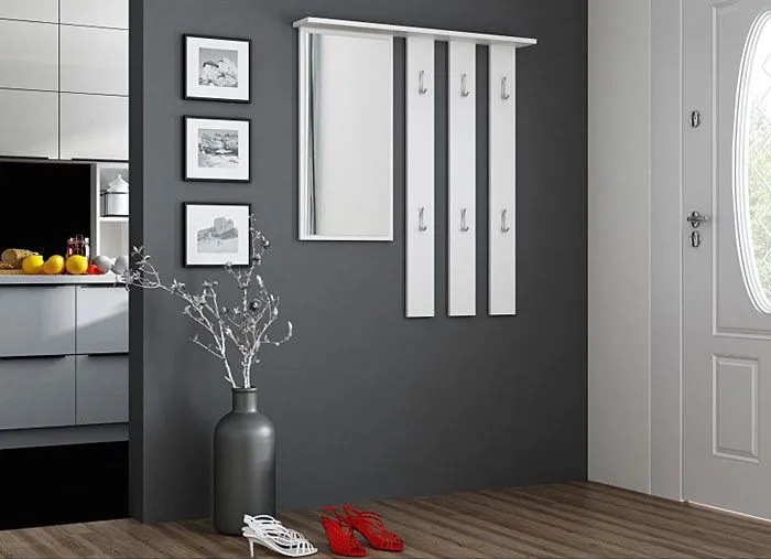 Biały wieszak z lustrem do przedpokoju Muvo