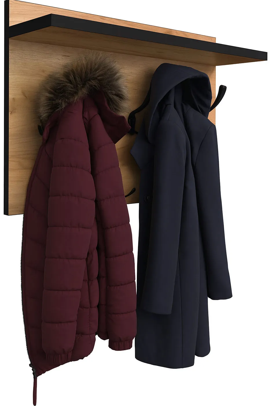 Dotyczy: Nowoczesny wieszak z półką dąb craft + satyna - Hres 3X