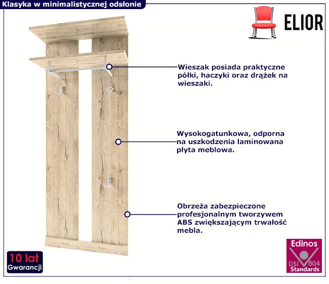 Przed Tobą niezastąpiony mebel każdego domowego przedpokoju - wieszak ścienny Lister XL 20X. Od teraz to on będzie Twoim niezawodnym towarzyszem w organizacji przestrzeni. Jest meblem, który pomoże Ci w utrzymaniu porządku tak ważnego pomieszczenia, jakim jest przedpokój. Posiada haczyki, półki oraz drążek na wieszaki, które tworzą doskonałe środowisko dla Twoich ubrań i dodatków. Pozwól, by wprowadził do Twojego wnętrza nie tylko porządek, ale także wyjątkowy urok.