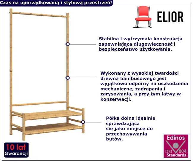Dotyczy: Bambusowy wieszak na ubrania z półkami - Patris 9X