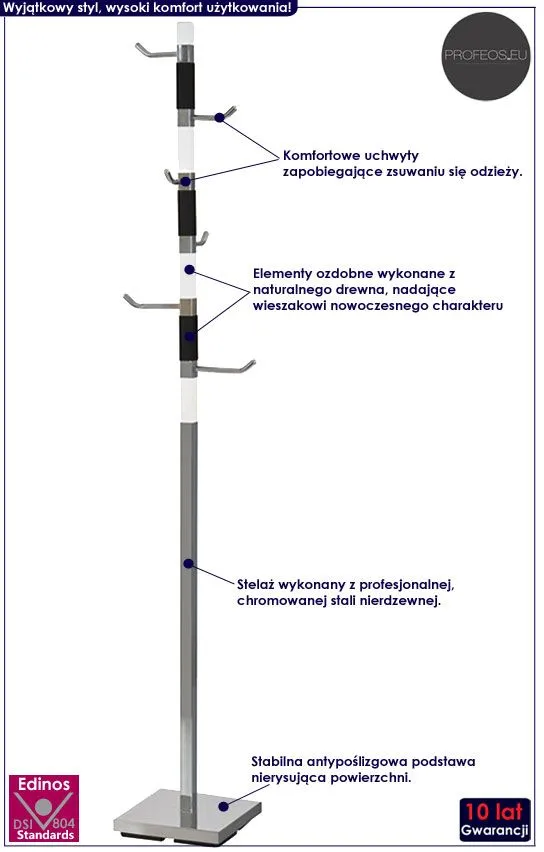 Jesteś wielbicielem nowoczesnego designu? Rozglądasz się za niebanalnym i trwałym wieszakiem na ubrania? Ubrania Twojej rodziny oraz gości nie muszą miąć się rzucone na fotel... Już teraz mogą komfortowo spoczywać na najmodniejszym wieszaku stojącym Inderio marki Profeos. Produkty Profeos charakteryzują się niebanalnym designem i precyzją wykonania, a funkcjonalność i minimalizm to cechy wyjątkowego wieszaka Inderio.