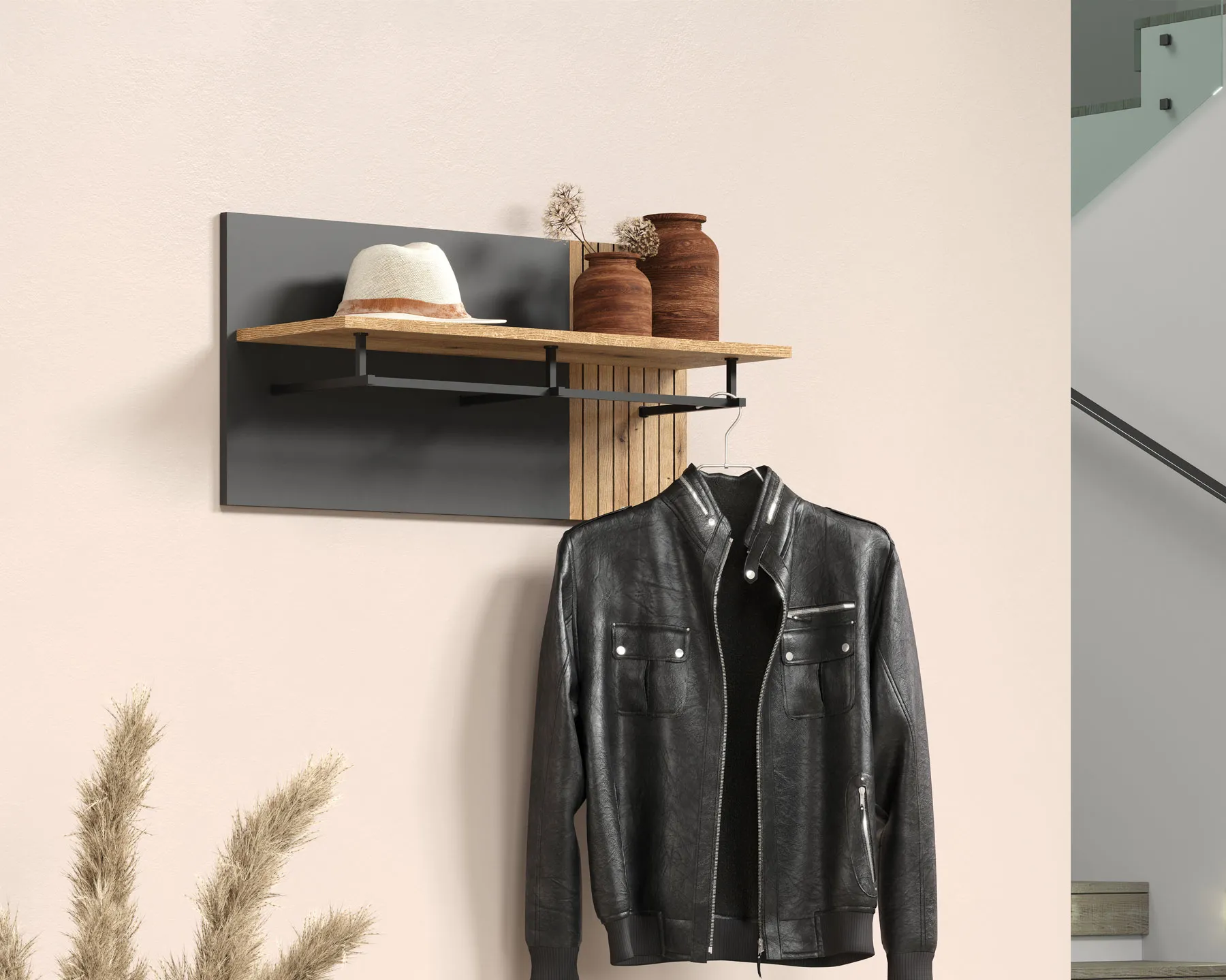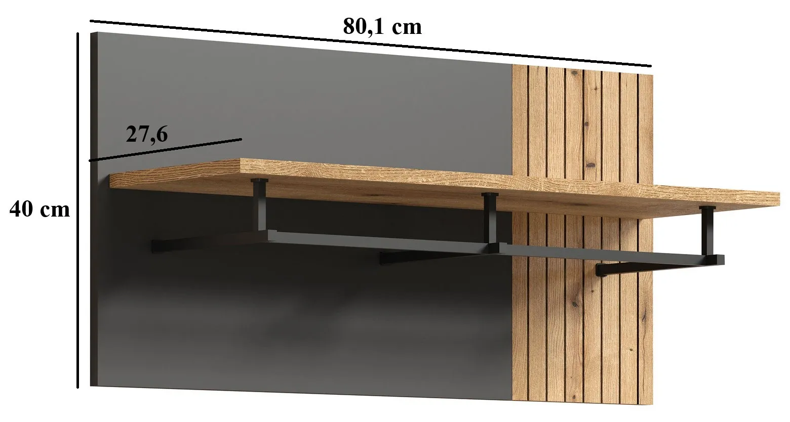 Wieszak z półką do przedpokoju grafit + dąb evok - Assoni 13X