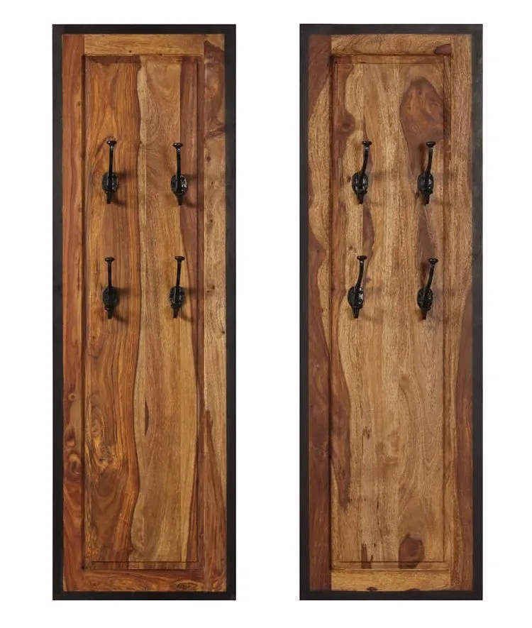 - Trwałe naturalne lite drewno sheesham oraz stalowe haczyki malowane proszkowo.