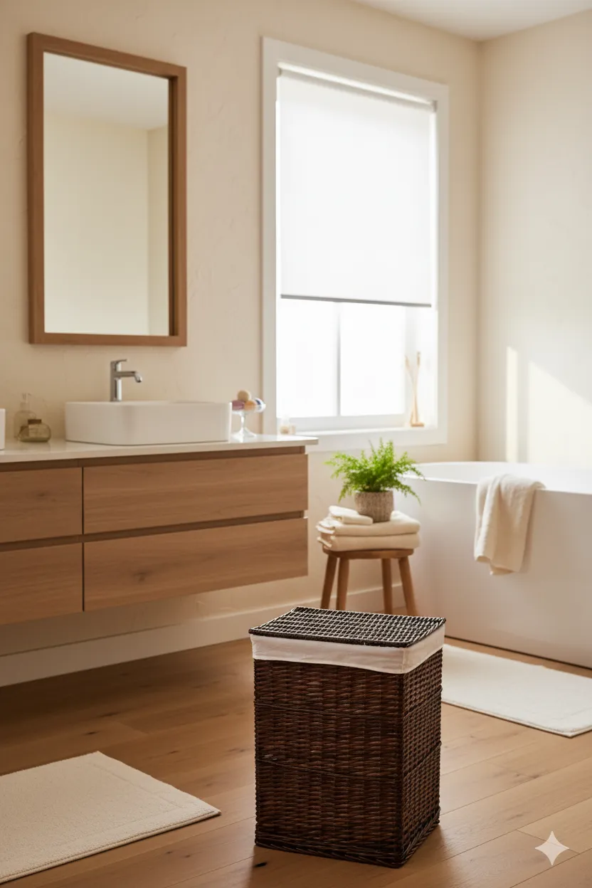 Dotyczy: Biały wiklinowy kosz na pranie 72L - Skalo