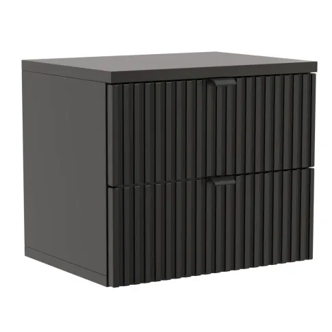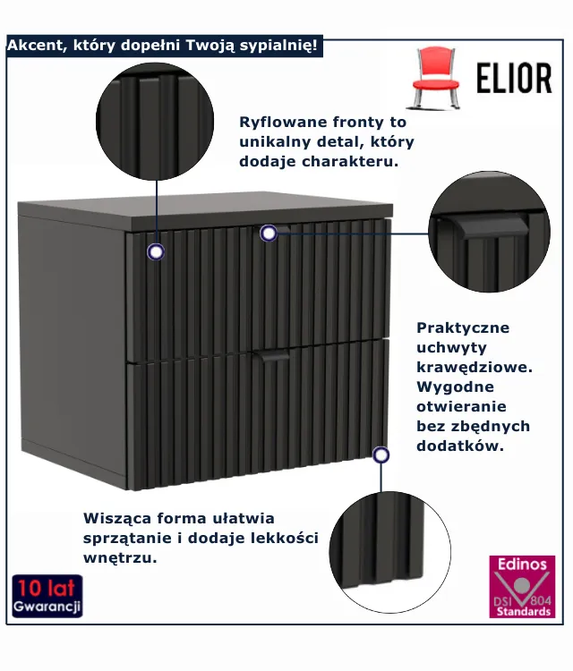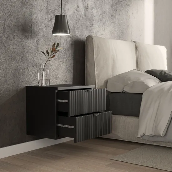 Dotyczy: Podwieszana czarna szafka z drewnianymi lamelami - Mafi 5X