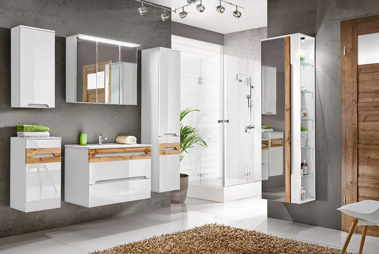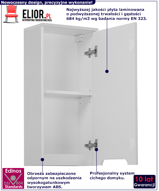 Dotyczy: Podwieszany słupek łazienkowy z lustrem - Mea 6X Biały połysk
