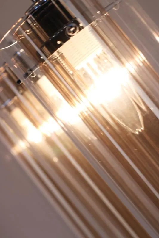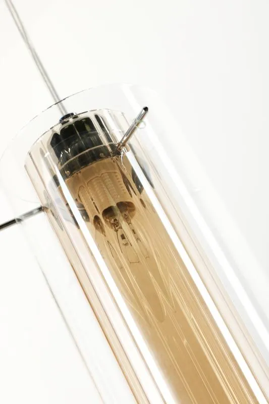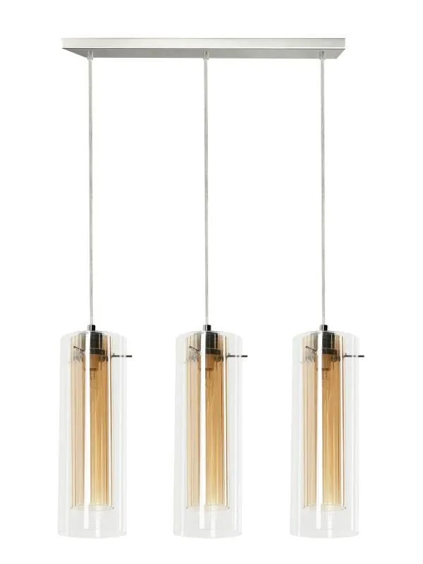 E605-Sines to piękna lampa wisząca utrzymana w nowoczesnym stylu. Dwuczęściowe, szklane klosze nadają jej niecodzienny, przyciągający uwagę wygląd, a wysokiej jakości chromowane zawiesie doskonale uzupełnia wygląd lampy. Oprawa została wykonana wyłącznie z materiałów najwyższej jakości, dzięki czemu wygląda fenomenalnie. Szczególnie polecana do nowoczesnych, designerskich wnętrz.