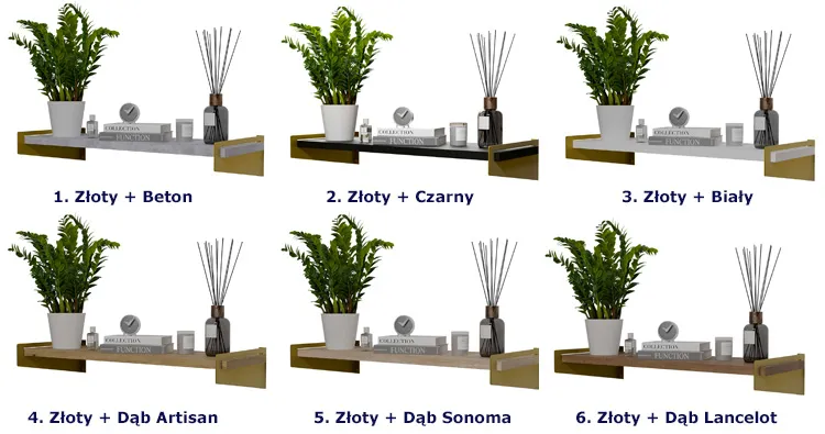 Dotyczy: Półka ścienna na książki złoty + beton - Mizu 5X
