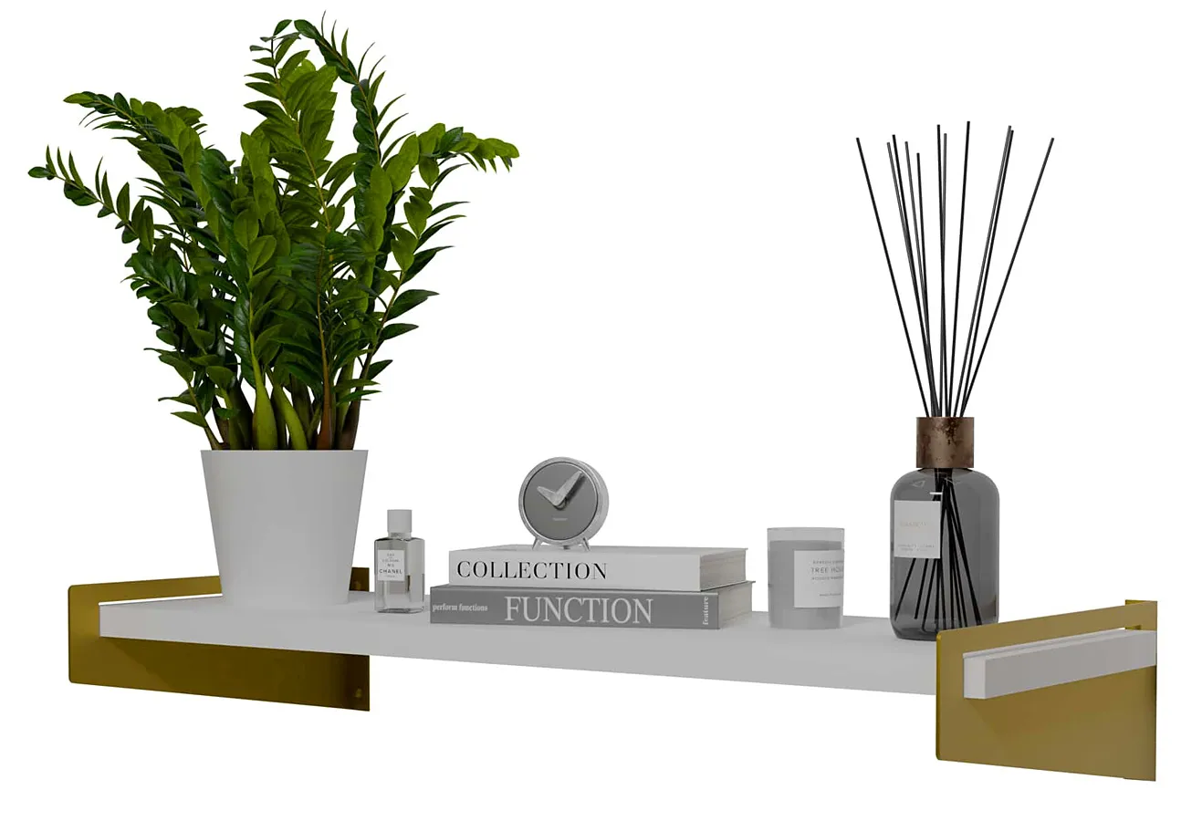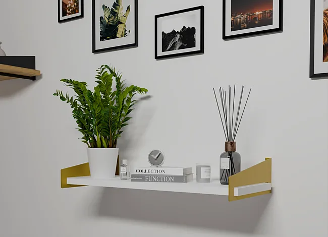 Dotyczy: Minimalistyczna półka ścienna złoty + dąb artisan - Mizu 5X